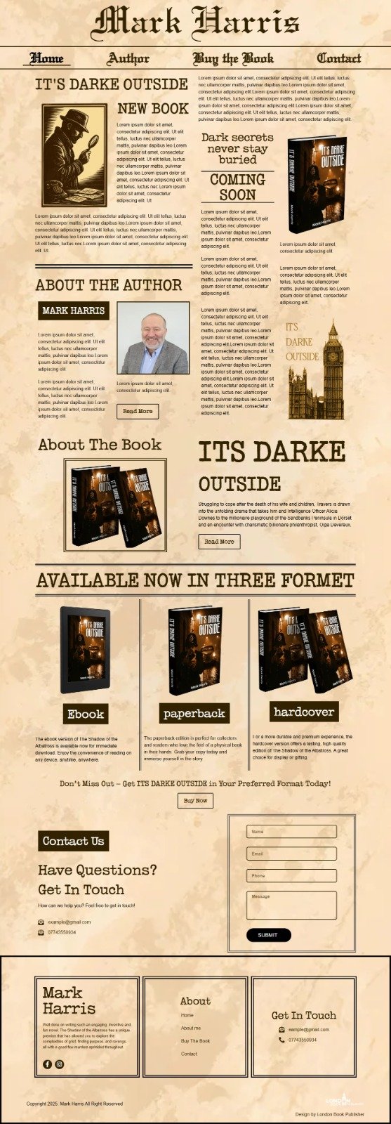 We start with a chat to understand your book, style, and goals. Then, we design a custom website with pages for your bio, books, reviews, and contact info. We add features like a blog or newsletter sign-up if you want. You review the design, and we tweak it until you’re chuffed.